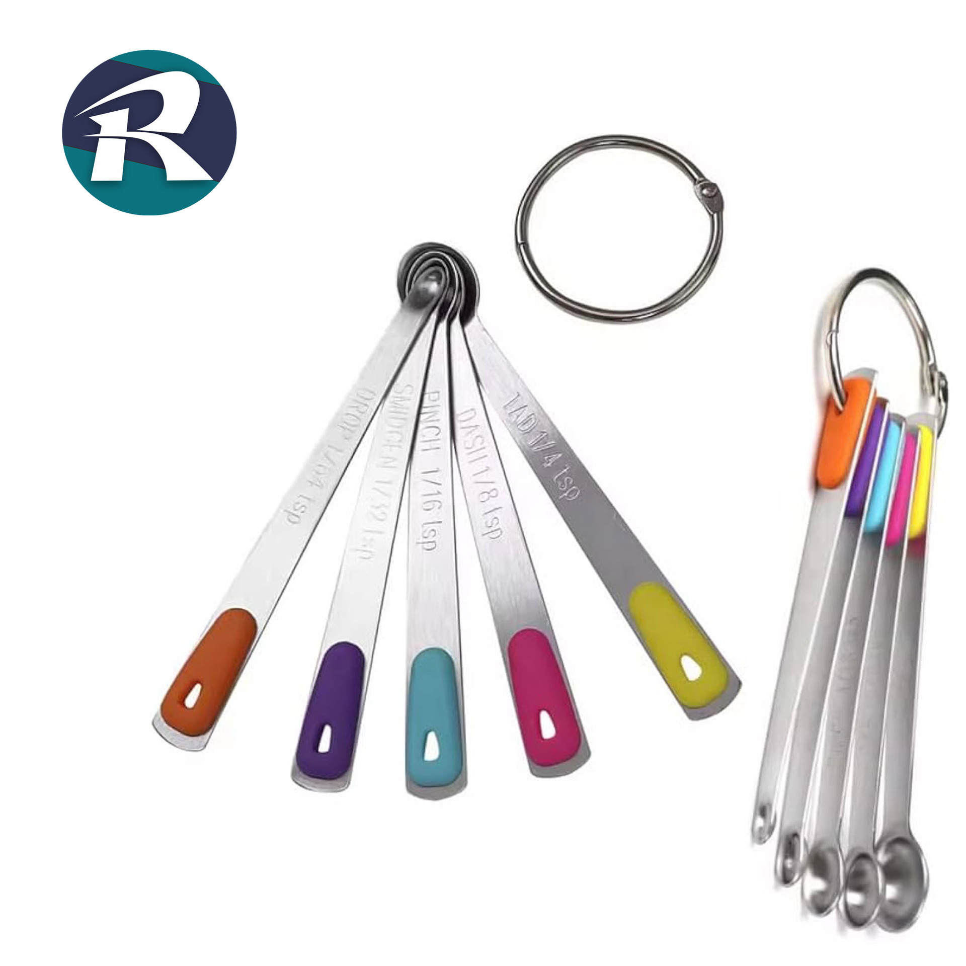 ステンレス調味スプーン5点セット計量スプーンカラーシリコンハンドル調味スプーン計量スプーンセットキッチン調味スプーン