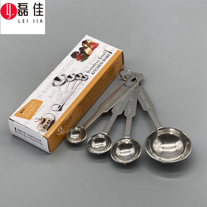 ステンレス製計量スプーン4点セットベーキングスプーン目盛り付き計量スプーン丸頭計量器キッチン調味4点セットスプーン