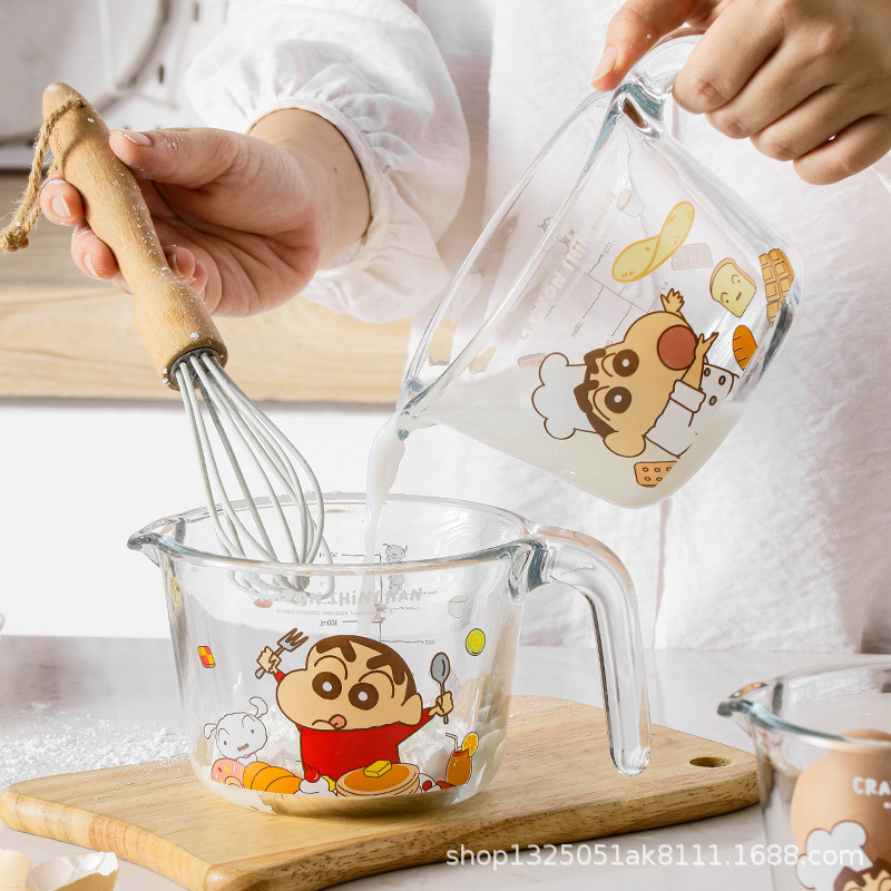 クレヨンしんちゃんガラス計量カップカラーボックススケール家庭用キッチンベーキング卵計量カップフィルターかわいい