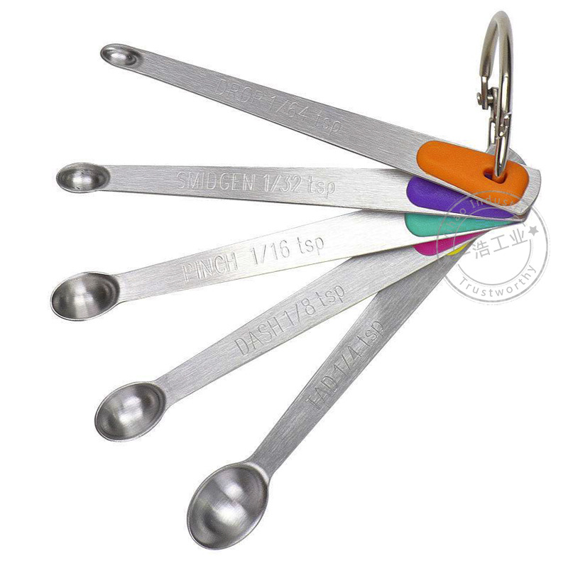 メーカー現物ステンレスミニスプーン5点セットシリコン手パッドミニ量スプーンカラーステンレス5点セット