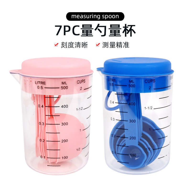 計量スプーン計量カップセットプラスチックスケール付き500mlベーキングツール7pcコンビネーションキッチン計量小麦粉スプーン