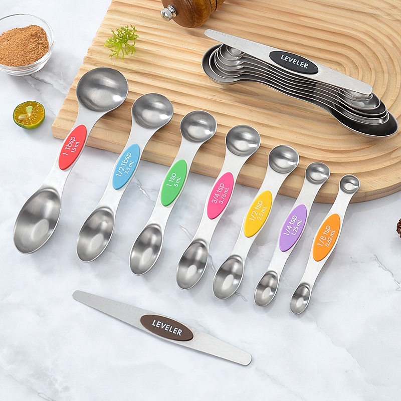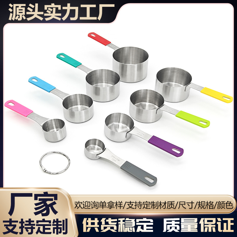 430ステンレスハンドル計量スプーンプラスチック計量カップ8点セットスケール付き計量スプーンセット焙煎ツール卸売