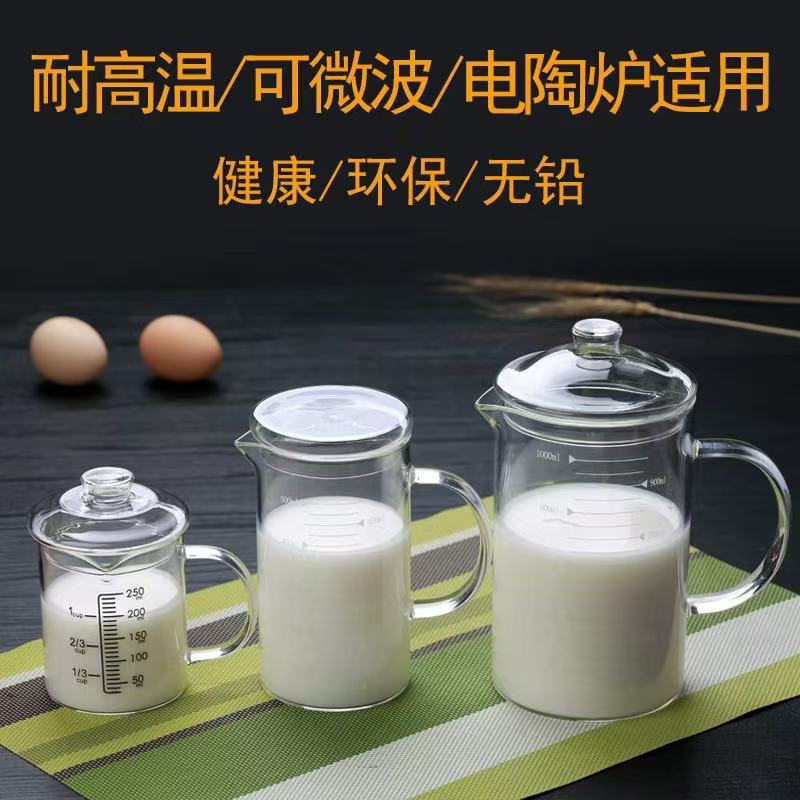 家庭用の厚いビーカーの目盛り付き蓋付きガラス計量カップ牛乳カップ焙煎計量カップ中年加熱計量カップ