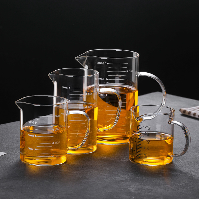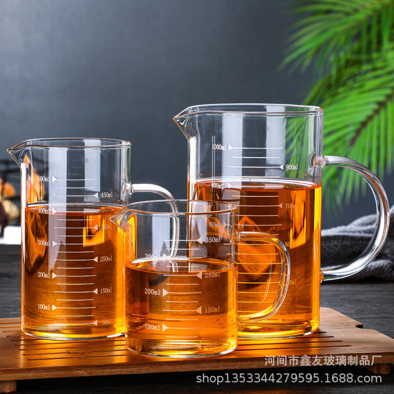 高ホウ素シリコン家庭用ガラス計量カップスケール付き大ビーカーキッチン耐熱高温厚いカップ250-1000