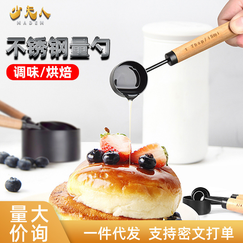 メーカー直販アカシア木黒計量スプーン計量カップセット焙煎用具実木計量スプーンステンレススプーン