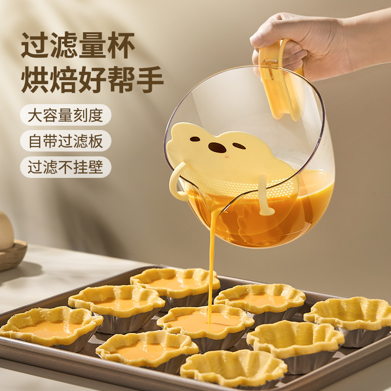 1000MLフィルター計量カップ、目盛り付き大容量卵液体プラスチック卵泡立てカップ、フィルター付き卵ベーキングカップ