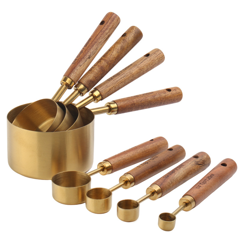 ステンレス鋼計量スプーン木製ハンドル計量カップセット計量スプーンベーキングスケールグラムスプーンコーヒースプーン粉ミルクスプーン定量スプーン