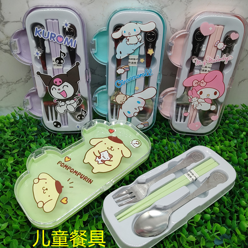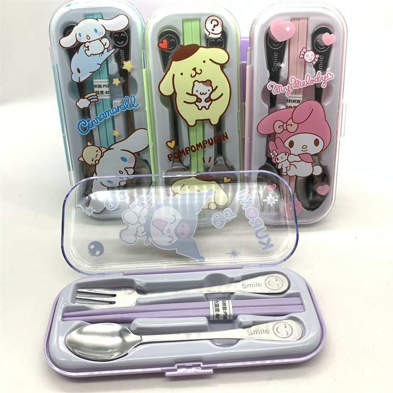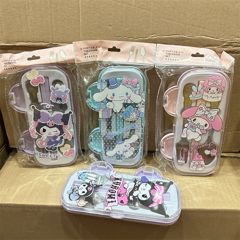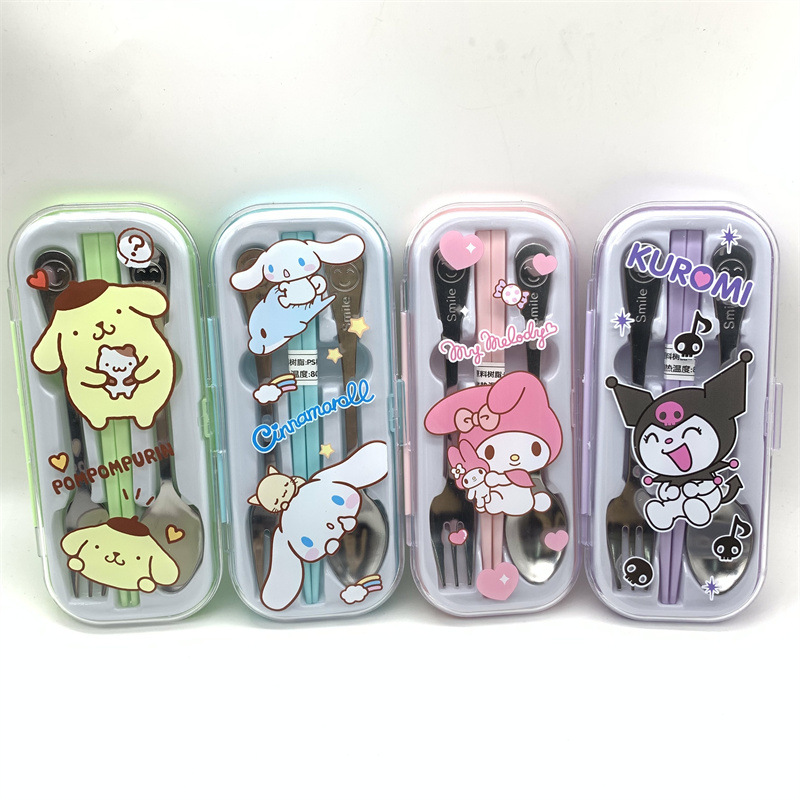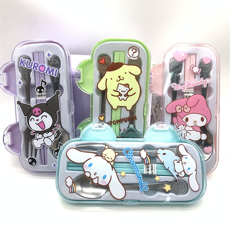 クロミ漫画スプーンフォーク箸食器三点セットステンレス子供かわいい屋外ポータブル食器箱
