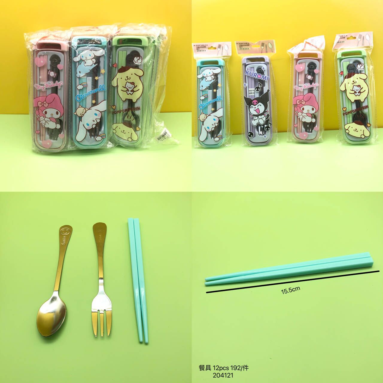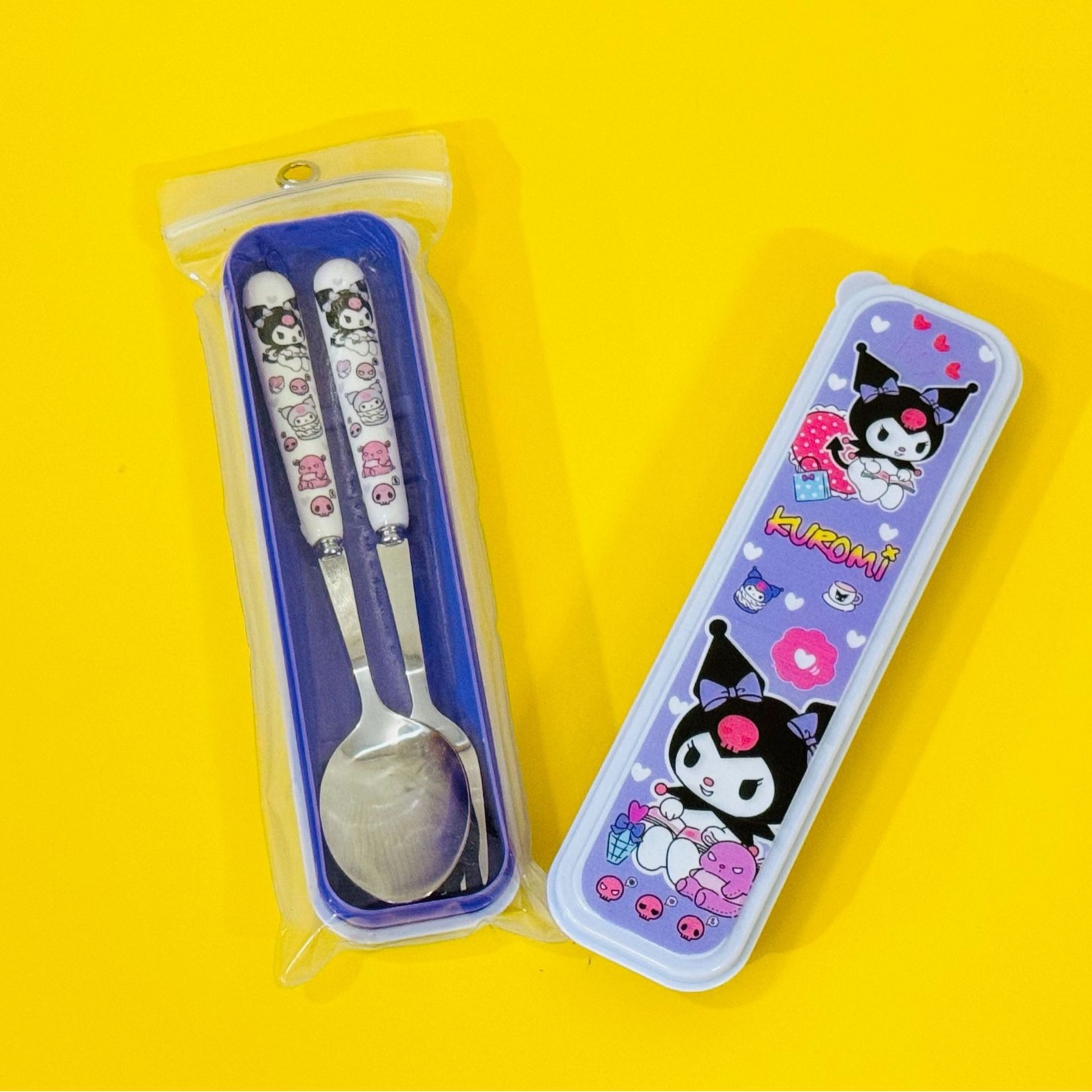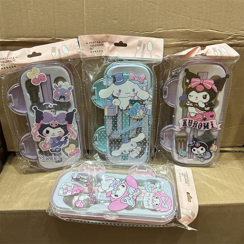 クロミ漫画スプーンフォーク箸食器三点セットステンレス子供かわいい屋外ポータブル食器箱