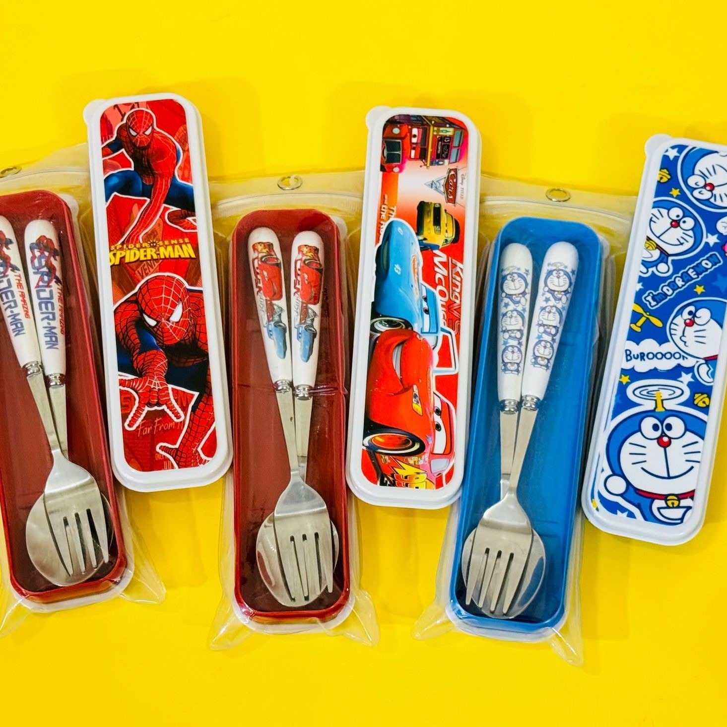 子供用ステンレス携帯食器セットアニメ箸フォークスプーン三点セットかわいいアウトドア旅行食器箱