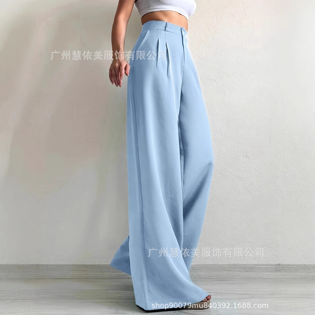 クロスボーダー Amazon ヨーロッパとアメリカの夏ハイウエスト通勤スリムでドレープ感のある多用途カジュアルワイドレッグパンツルーズビジネス女性