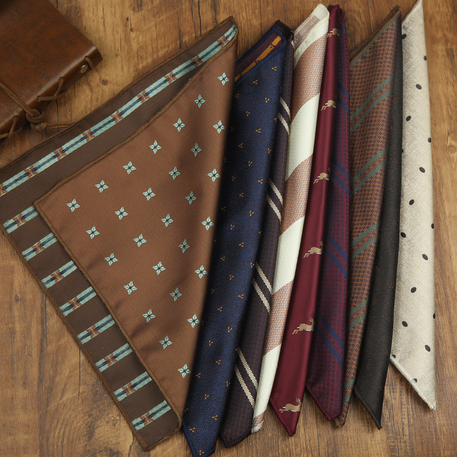 英倫男性スーツのポケットタオル晏会パーティーのレトロなプリントのスカーフコーヒー色の紳士服のアクセサリー