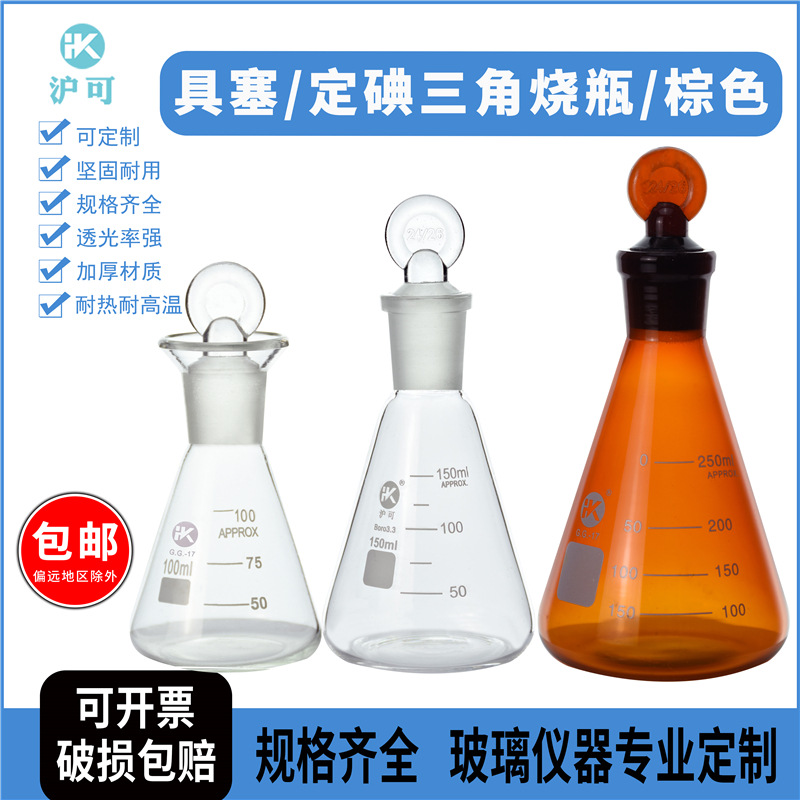 ヨウ素瓶高ホウ素シリコン定ヨウ素フラスコ具栓コーン瓶100 250 500 1000ml具栓三角フラスコ