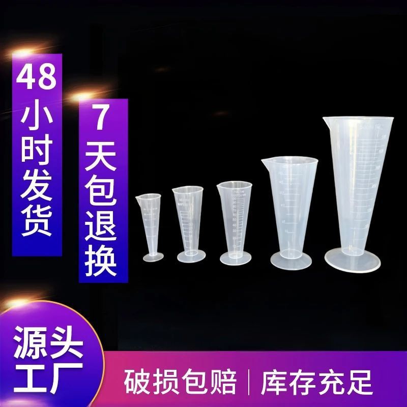 工場スポットppプラスチックスケール計量カップ厚い三角スケール計量筒テーパー化学量筒メーカー卸売