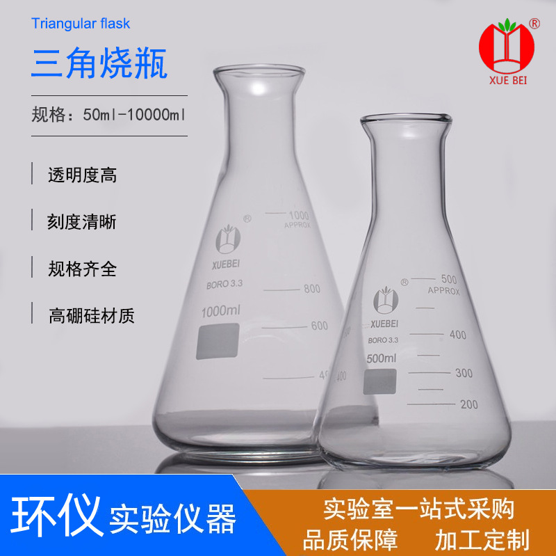 雪貝三角フラスコ、大口円錐形フラスコ、高ホウケイ酸ガラス、耐高温、実験用品卸売、平底広口
