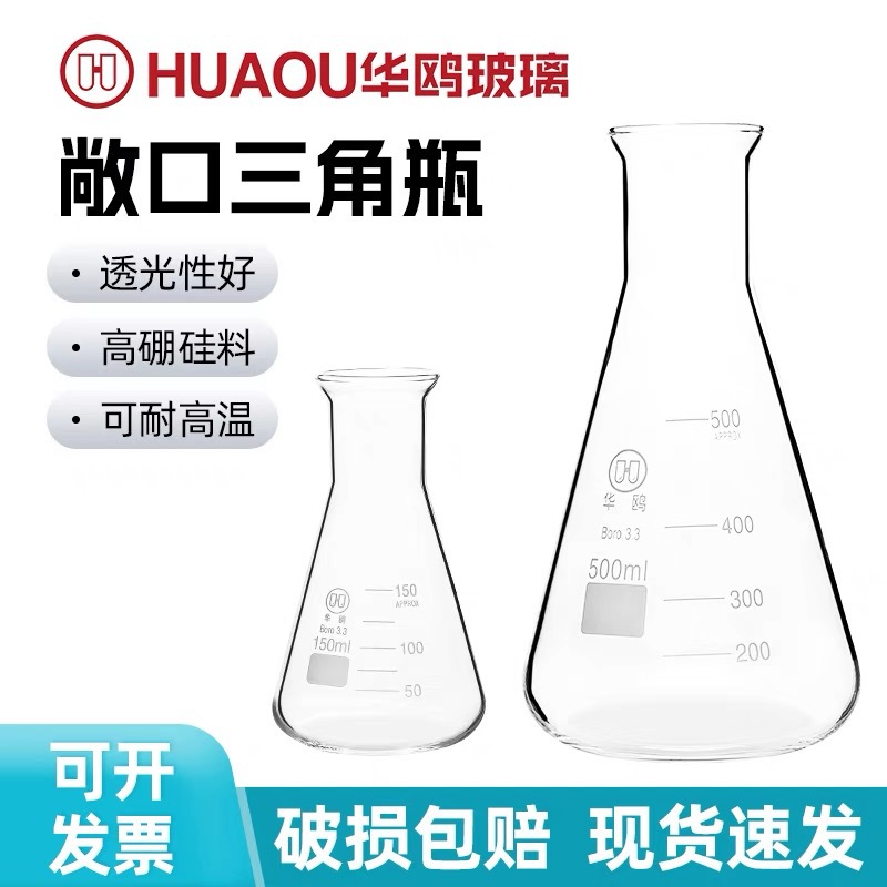 華鴎開放口三角瓶ベルマウス高ホウ素シリコン耐熱ガラス三角フラスコ実験室50/250ml