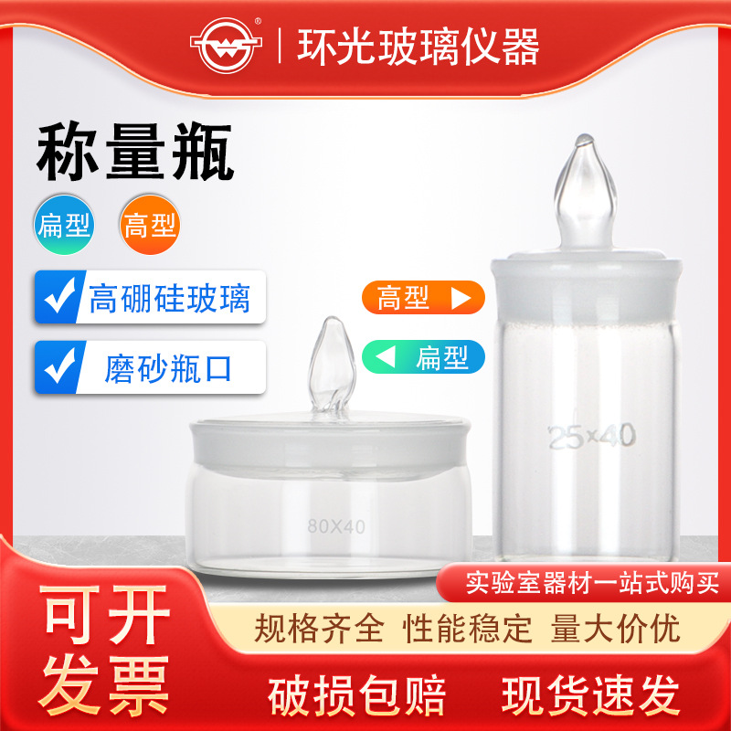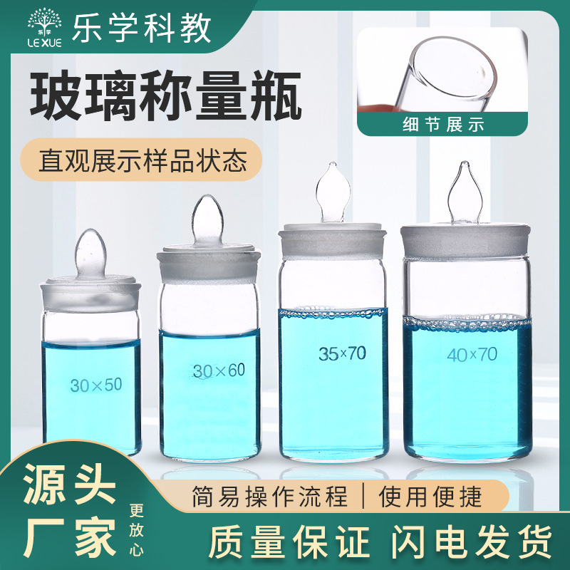 源メーカー透明ガラス計量瓶高形平形化学実験室高型密封性強計量瓶
