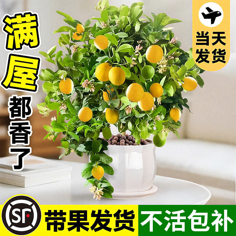果物付き香水レモンツリー鉢植え、食用古木苗、リビングルームバルコニー緑植物、四季フルーツツリー苗