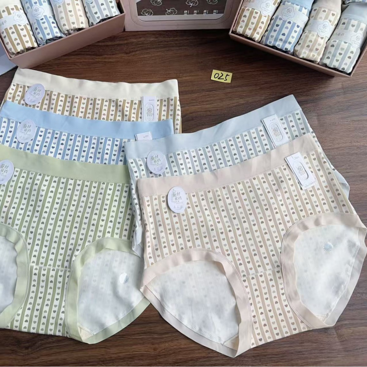 025#精美16条/盒装 磨毛暖暖裤爱心条纹印花女士内裤