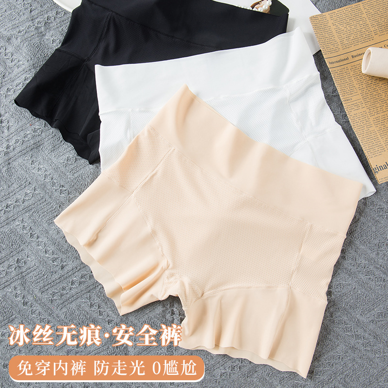 氷糸平角無痕下着女性純綿股中腰四角安全ズボン保険迷光防止夏薄手