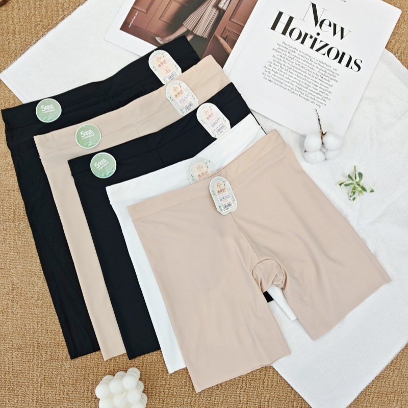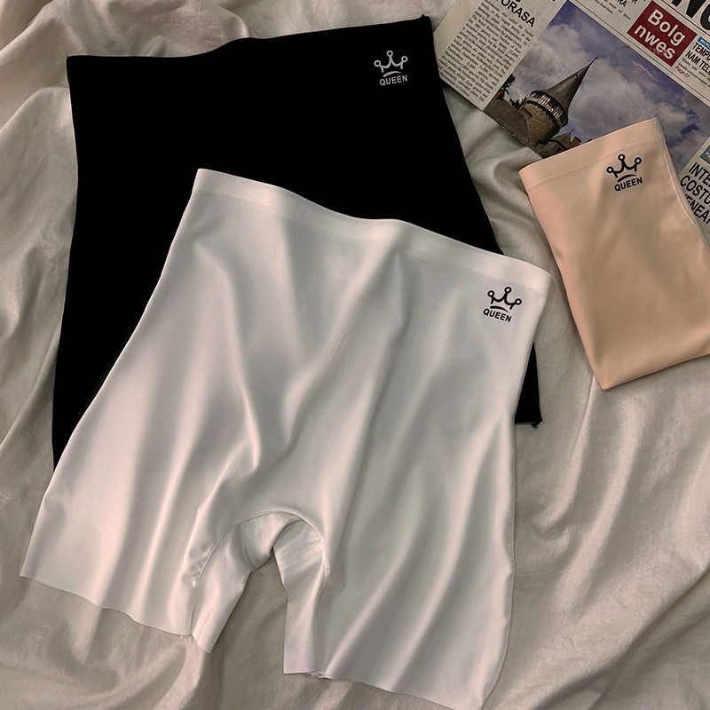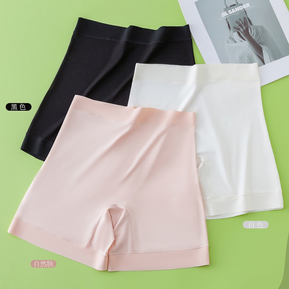 夏用女性用アイスシルク安全パンツ、シームレス、通気性、股間カバー、タイトフィット、露出防止、5点レギンス、薄い下着