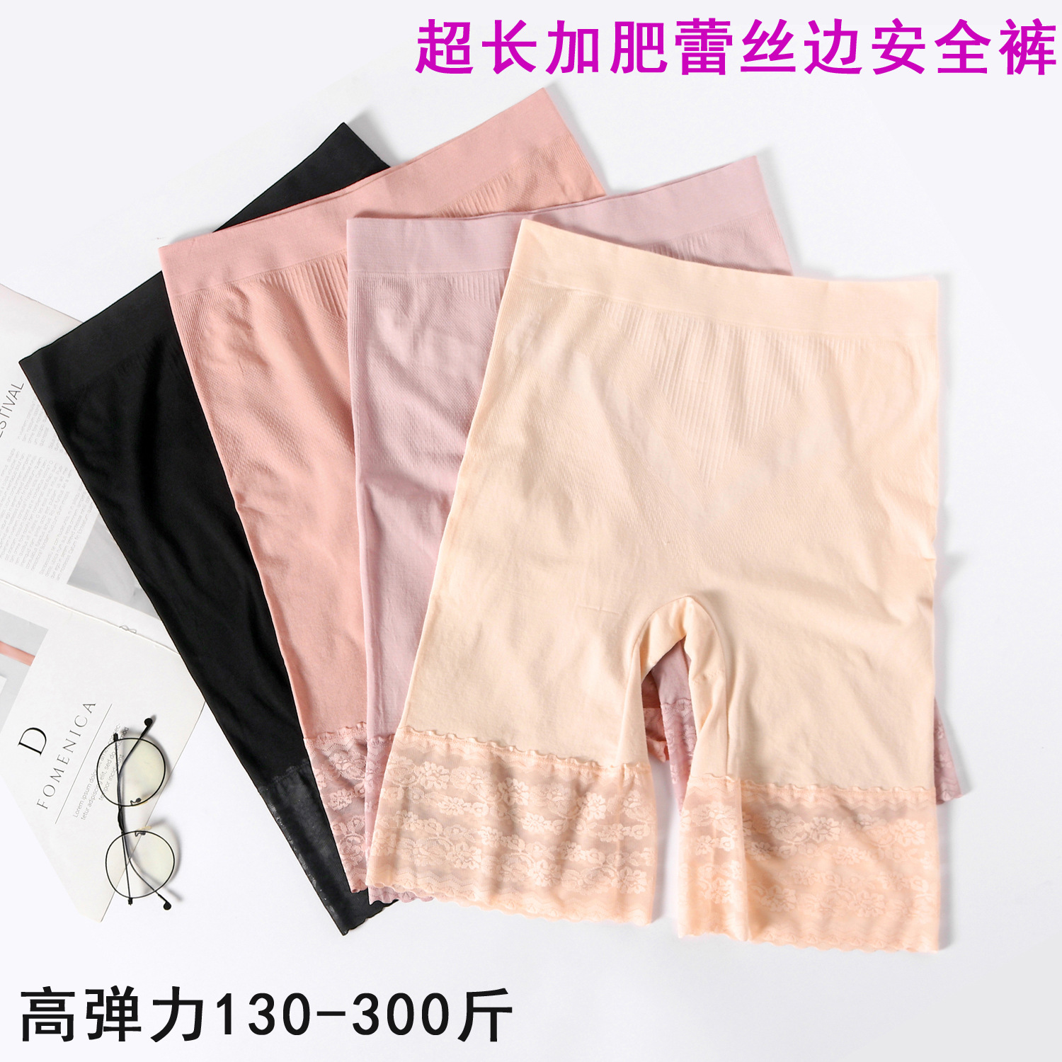 プラスサイズ高弾性シームレス長め五分丈露出防止安全パンツ女性用 100kg レース裾ハイウエスト