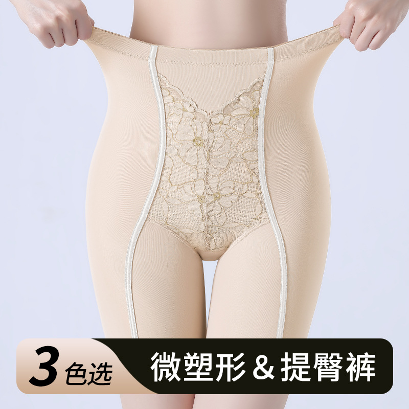 夏の防走光安全ズボンの底のズボンの高腰は腹の女性の下着のレースの辺の無痕の氷の糸の3分のショートパンツを収めます。