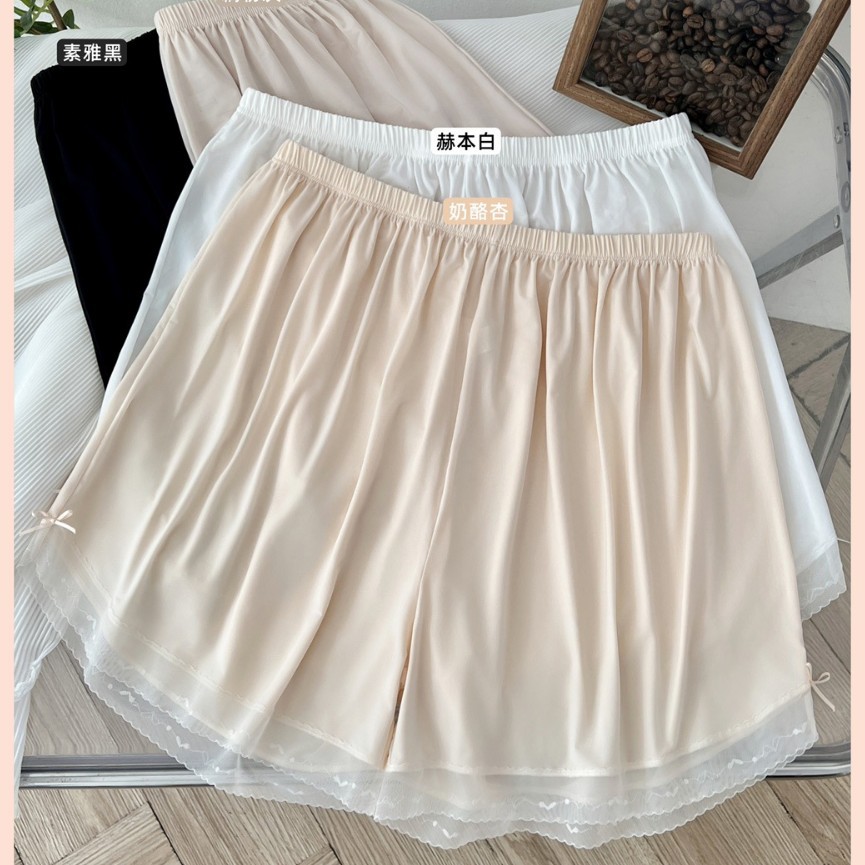 女性用夏用アイスシルク安全パンツ、露出防止、通気性のあるレースのリボンボクサーブリーフ、ハイウエストボクサーブリーフ