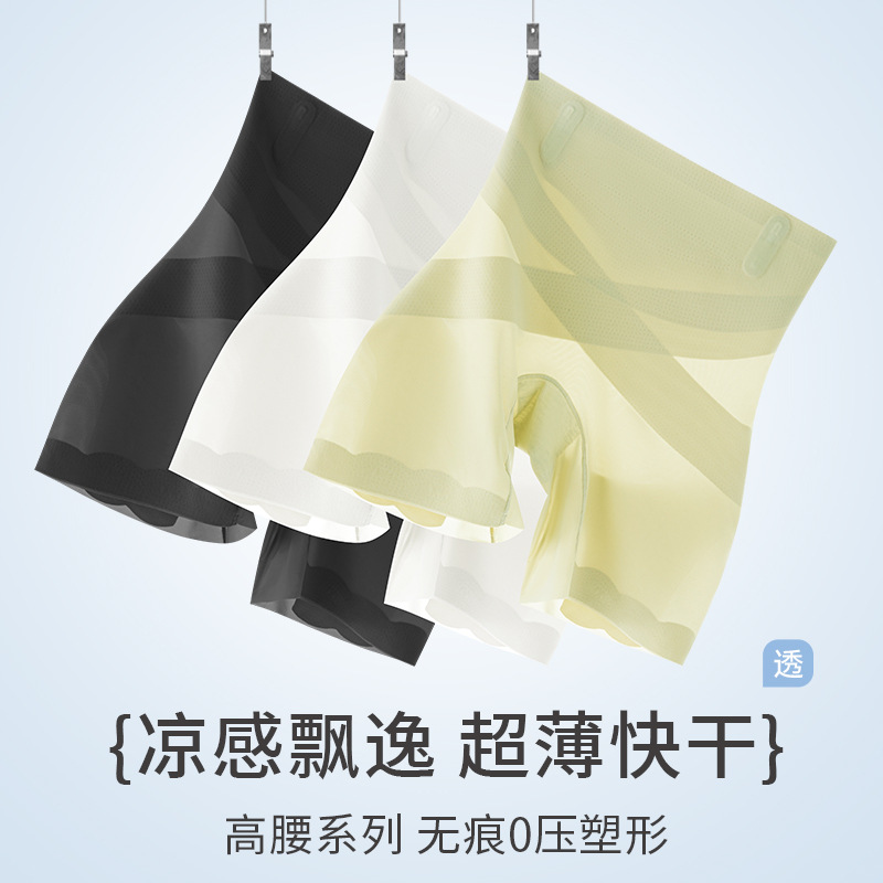人気の7Aアイスシルクシームレスハイウエスト安全パンツ夏通気性薄型おなかコントロールパンツ抗菌クロッチアンチカール下着