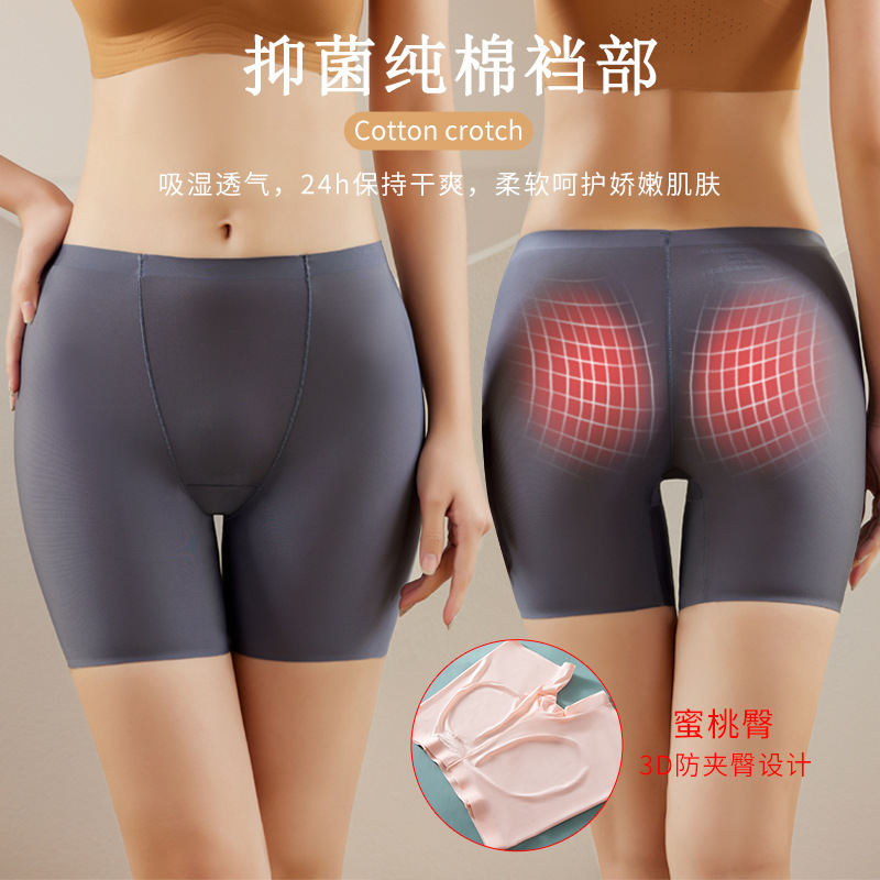 無痕平角下着女性氷糸通気性薄い安全ズボン二合一抗菌股純色四角ズボン現物