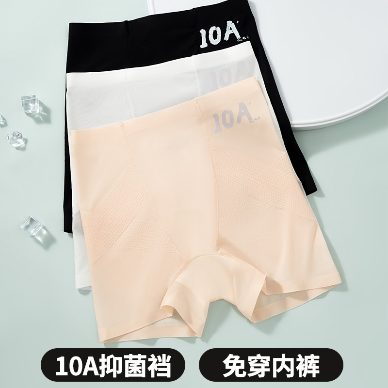 10A 抗菌クロッチハイウエストシームレス安全パンツ女性用アイスシルク露出防止スリーインワン薄型非カールレギンス