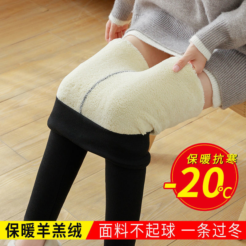 子羊の毛の底のズボンの女性の冬のベルベットの厚いねじの修身はやせています。