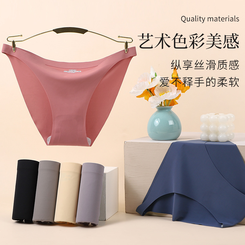 クロスボーダー氷糸無痕一枚式下着女性超薄裸感運動フィットネス波辺半包尻三角パンツ女性