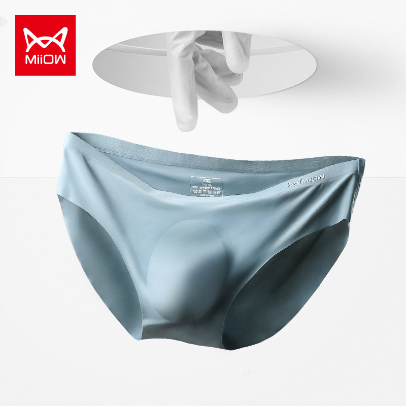 猫人男性下着氷糸無痕三角パンツ夏通気速乾半ズボン透明超薄セクシー男底ズボン