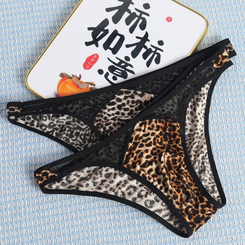 クロスボーダー新型豹紋低腰セクシー風情通気性成人網糸ポリエステル繊維男性三角パンツショートパンツ