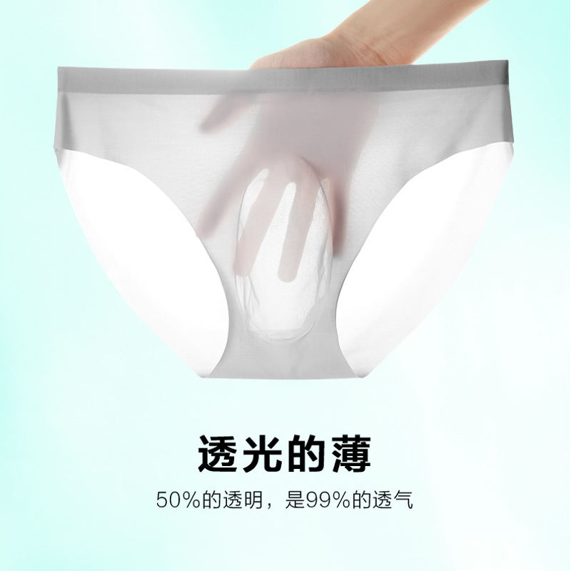男性氷糸三角パンツ夏超薄型セクシー透明速乾通気無痕男性下着青年情緒半ズボン