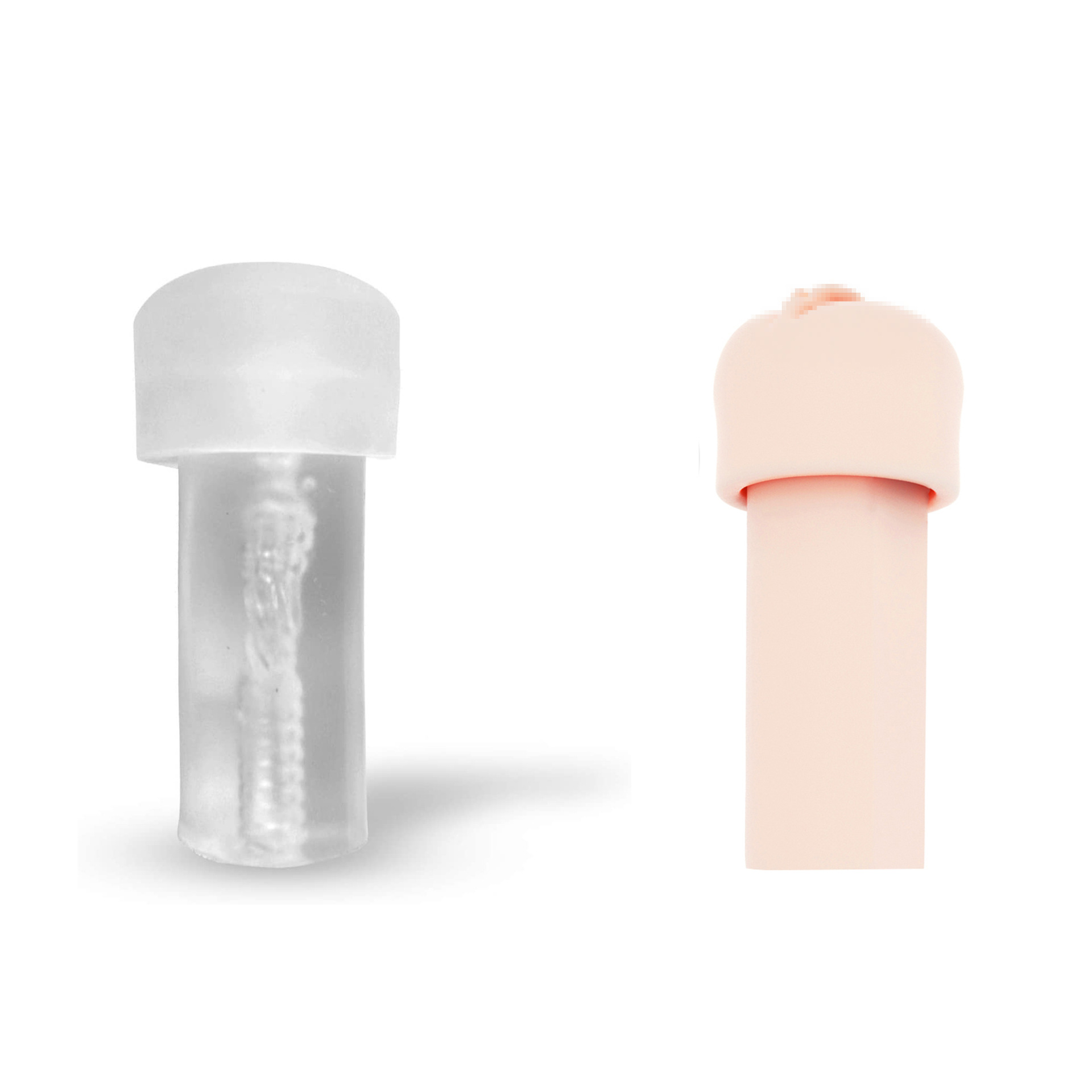 男性用の透明な肉色の長い逆型の内胆のペニスの肉球の訓練器の密封カバーのゴムパッドは飛行機の杯の部品を吸い込みます。