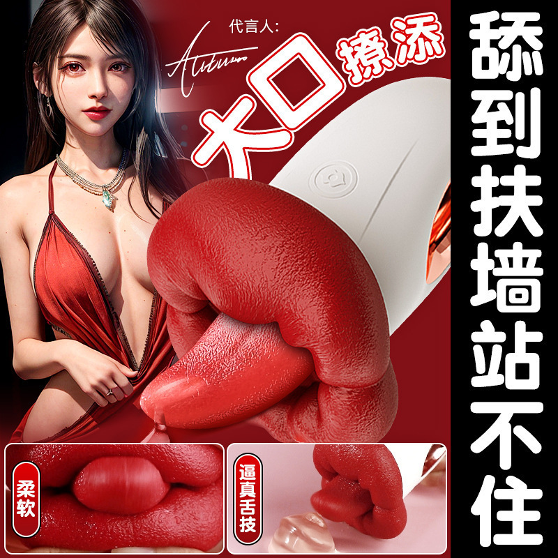 唇の歓蜜舌の厚い唇の大きい唇の赤い唇の舌は乳房の舌のクリトリスの振動棒の女性を舐めます。