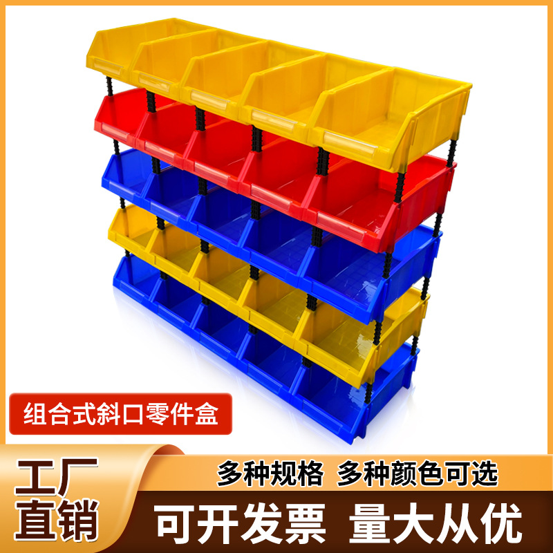 卸売りプラスチック部品箱組合せ式斜口材料箱ねじ箱組立棚箱工具収納箱