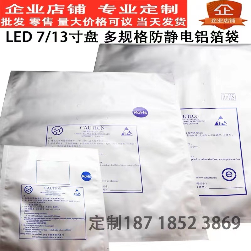 メーカー卸売 自己封止型平口帯電防止アルミ箔袋 包装袋 チップ ライトストリップ ハードディスク ロールディスク アルミ箔袋