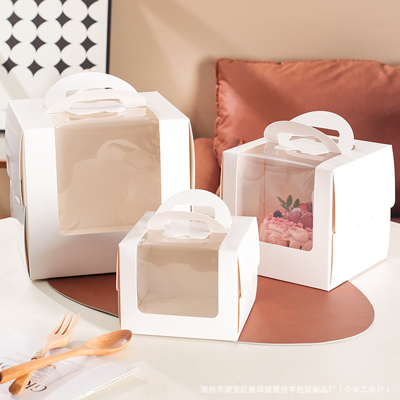 卸売り誕生日ケーキ箱焙煎包装箱4インチ6インチ8インチ手提げヨーロッパ式透明窓ムース西点箱