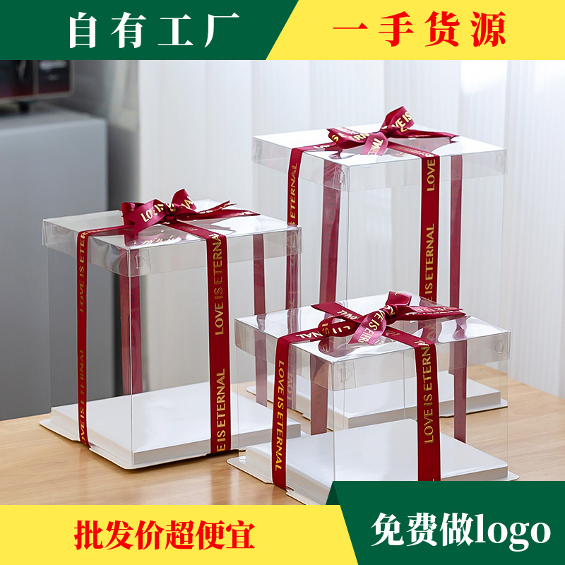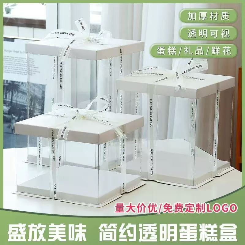卸売り透明ケーキ箱6 8 10 12インチ三合一誕生日ケーキ箱焙煎包装箱ケーキ箱