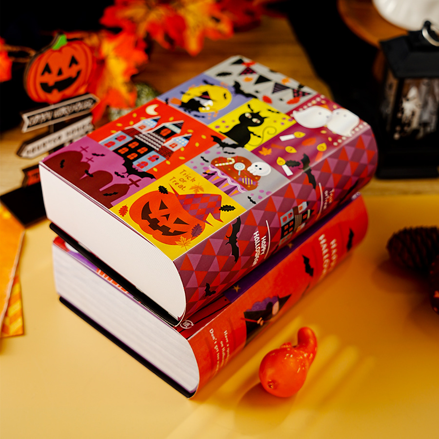 2種類のハロウィーン国境を越えた新しい手作りの本の包装箱がクッキーのプレゼント包装箱を覆っている