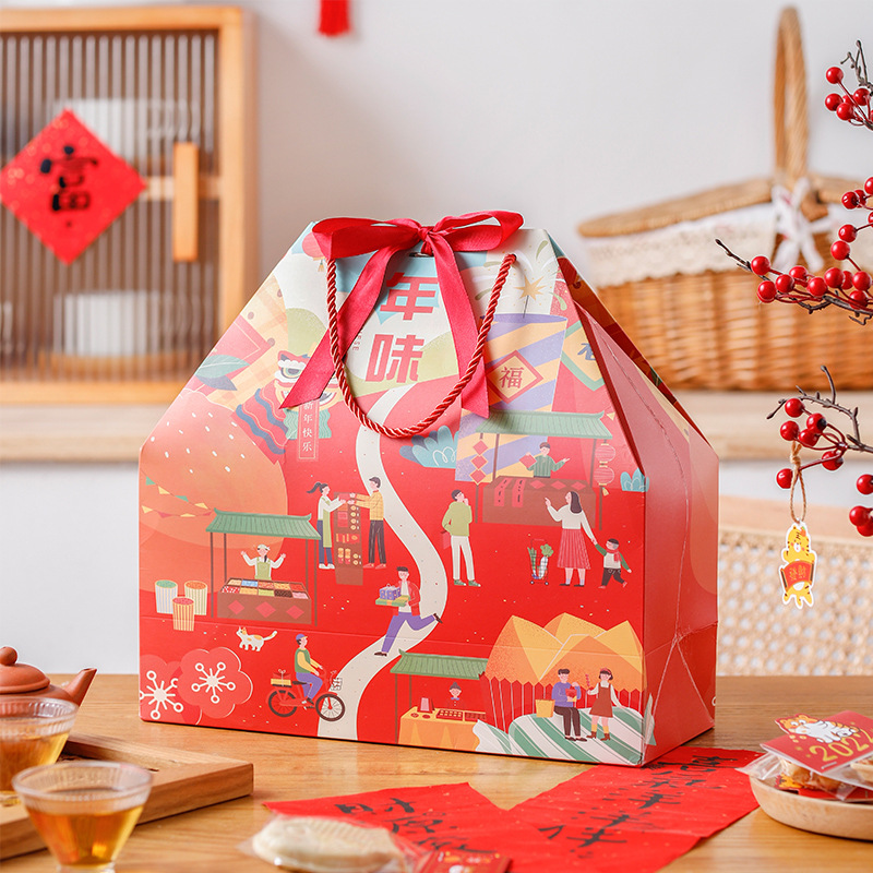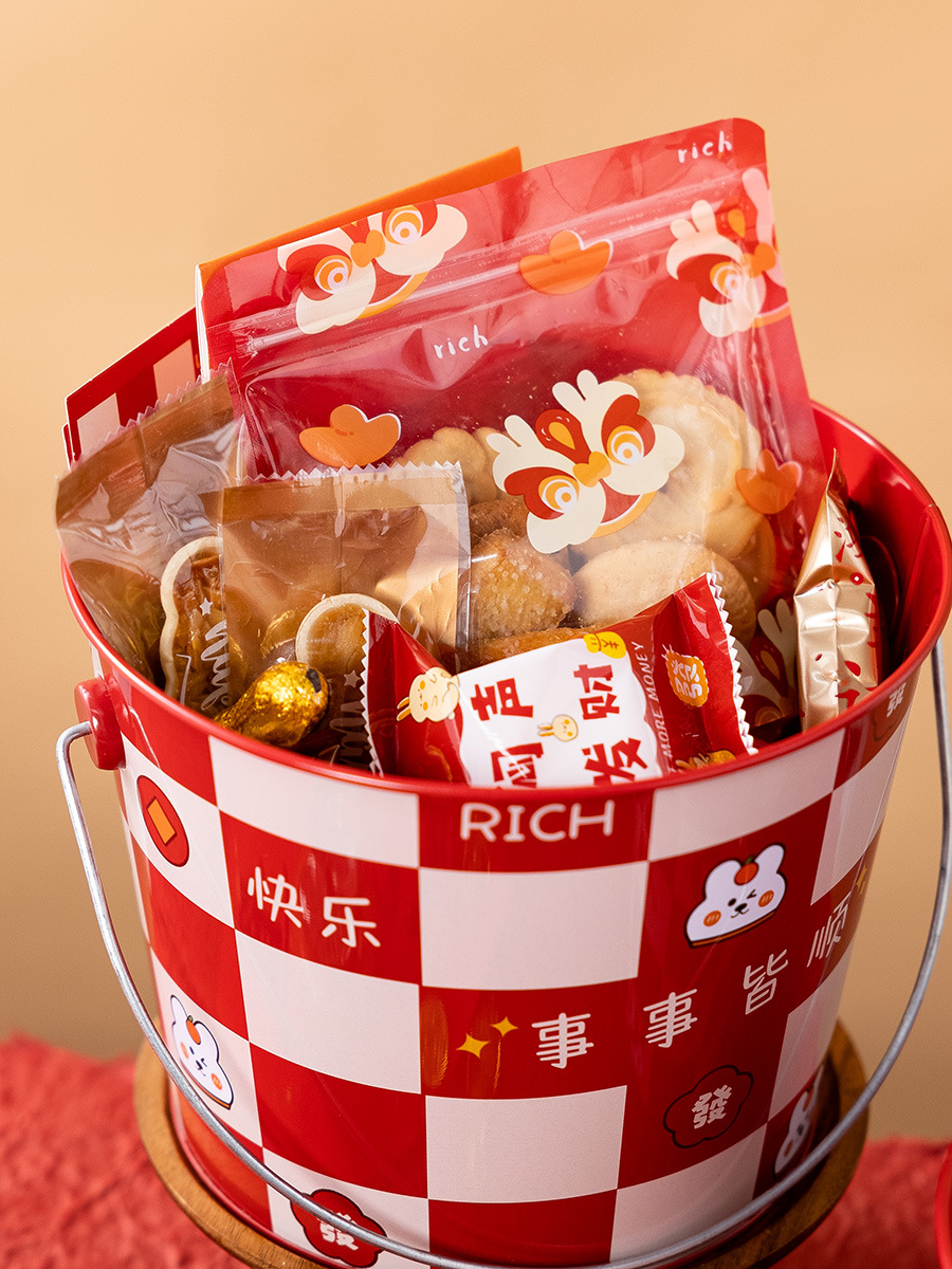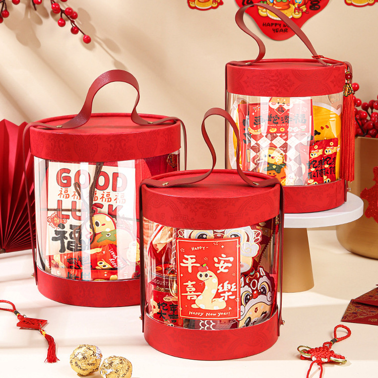 新年礼箱包装2025龍蛇年抱っこ桶雪花ショートニング袋キャンディービスケット年物特産品手提げ礼箱