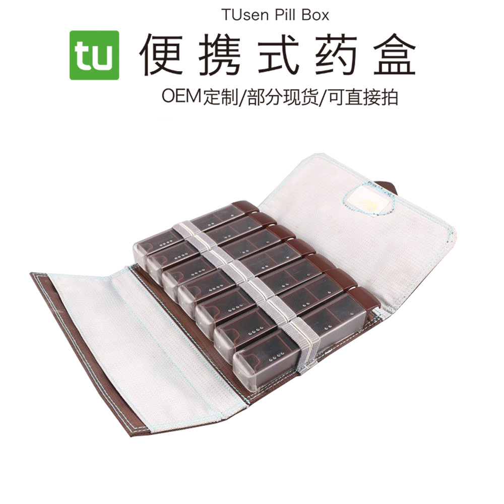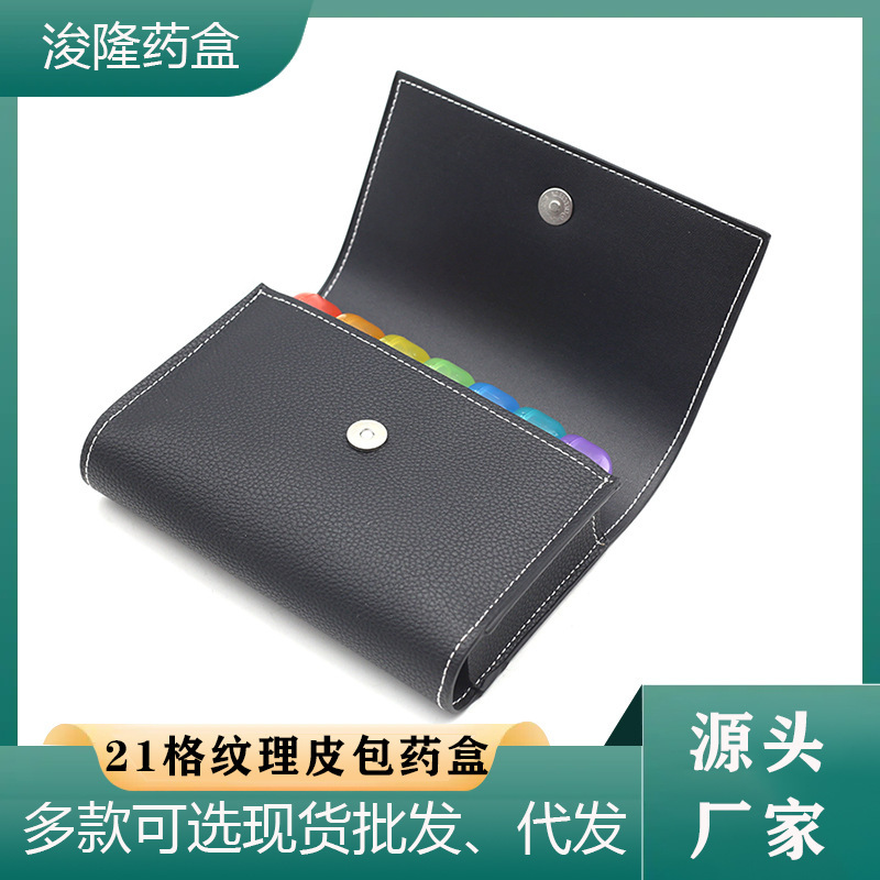 外国貿易人気商品 7日間カラーレザーバッグピルボックス 28コンパートメントノートブックスタイル 7色レザーバッグ 週間ピルボックス