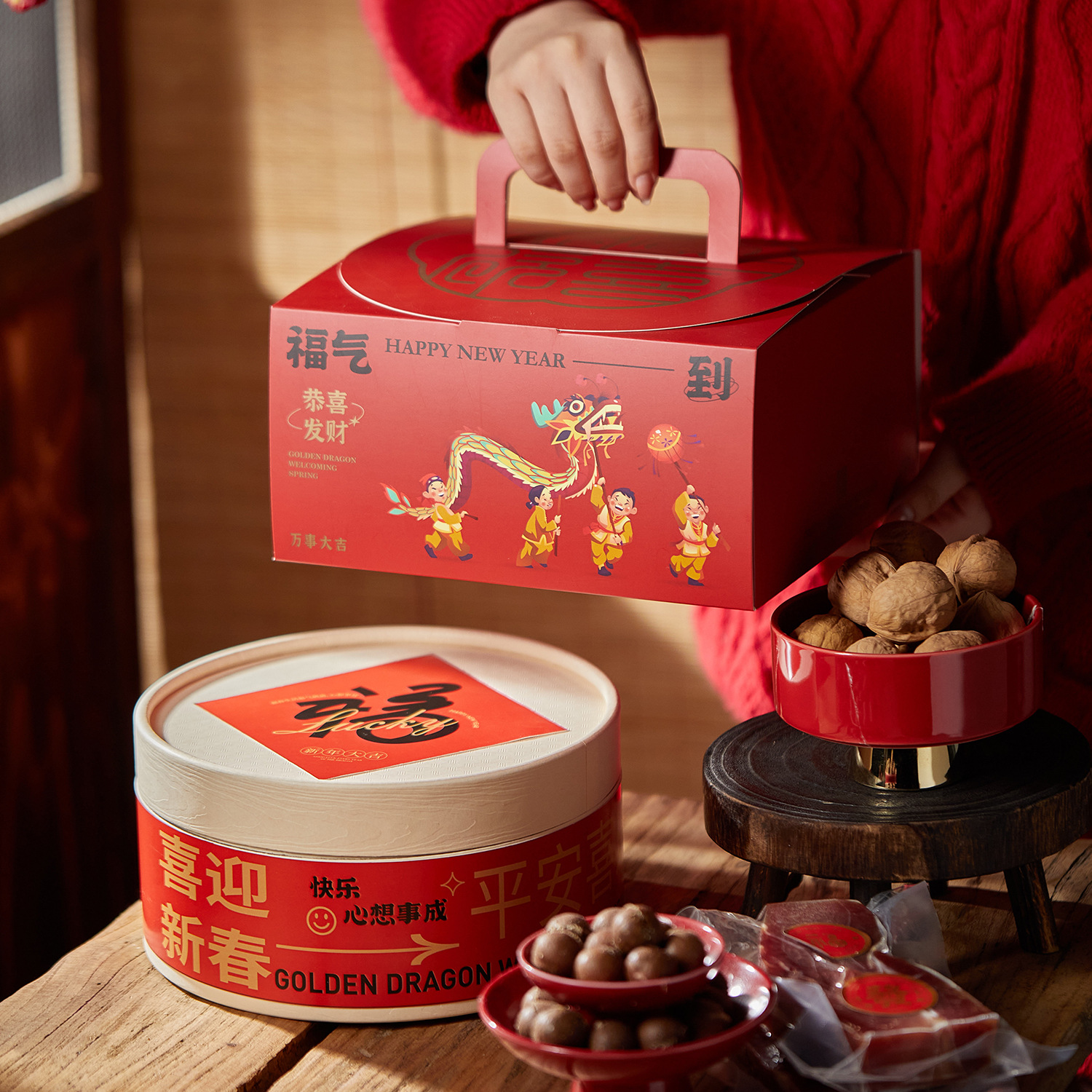 2024新龍年贈答国風年用品ギフトボックス抱っこ桶ビスケットナッツ特産菓子焙煎包装箱