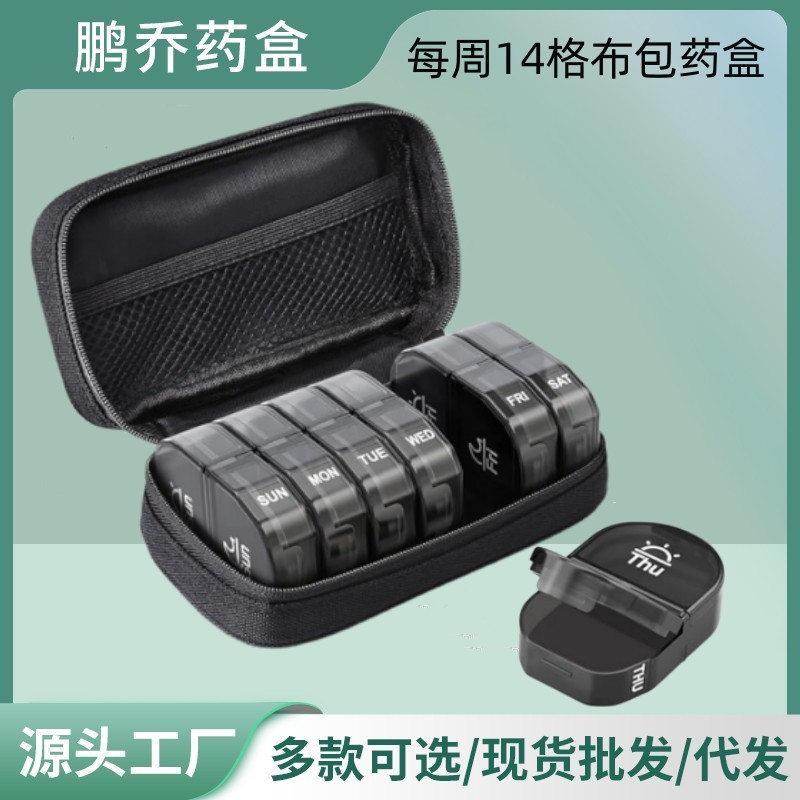 アマゾンの新しいホットセール金14格の黒いバッグ薬箱の人気財布金1週間14格の小さな薬箱