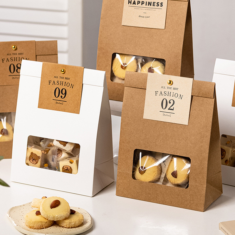 ビスケット包装袋スノーフレーククッキークラフト紙袋ギフトボックストフィーキャンディヌガー食品ゼロベーキングスイーツ