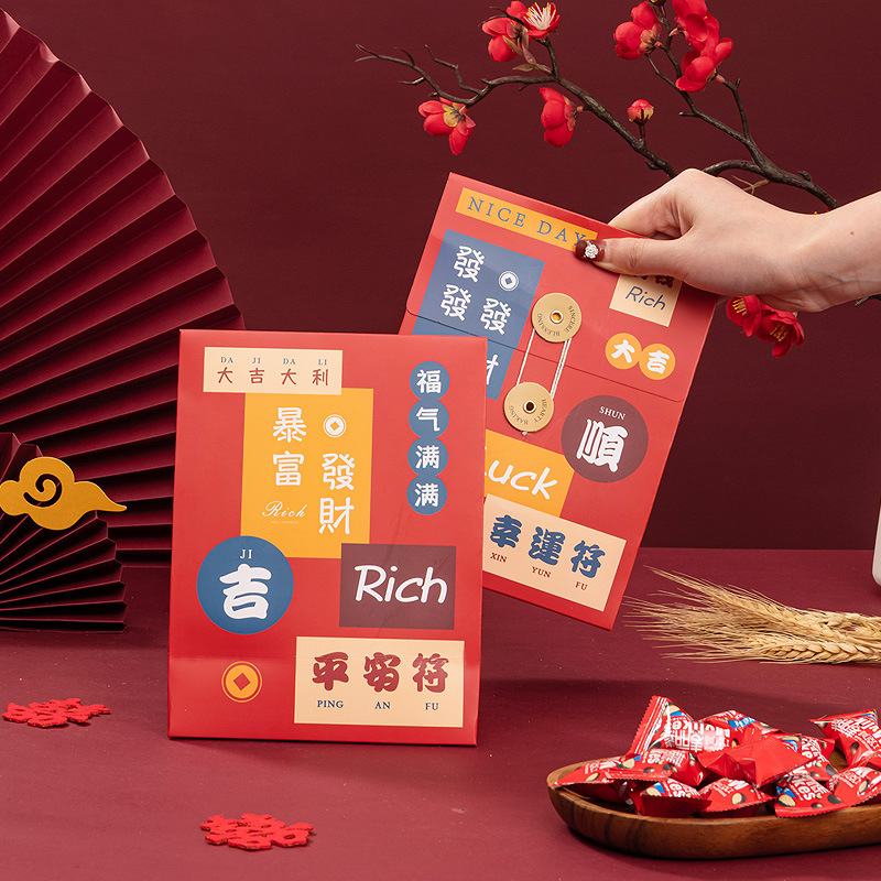 新年の竜年の贈り物の包装袋は贈り物のビスケットを持って袋の紙袋を焼きます。