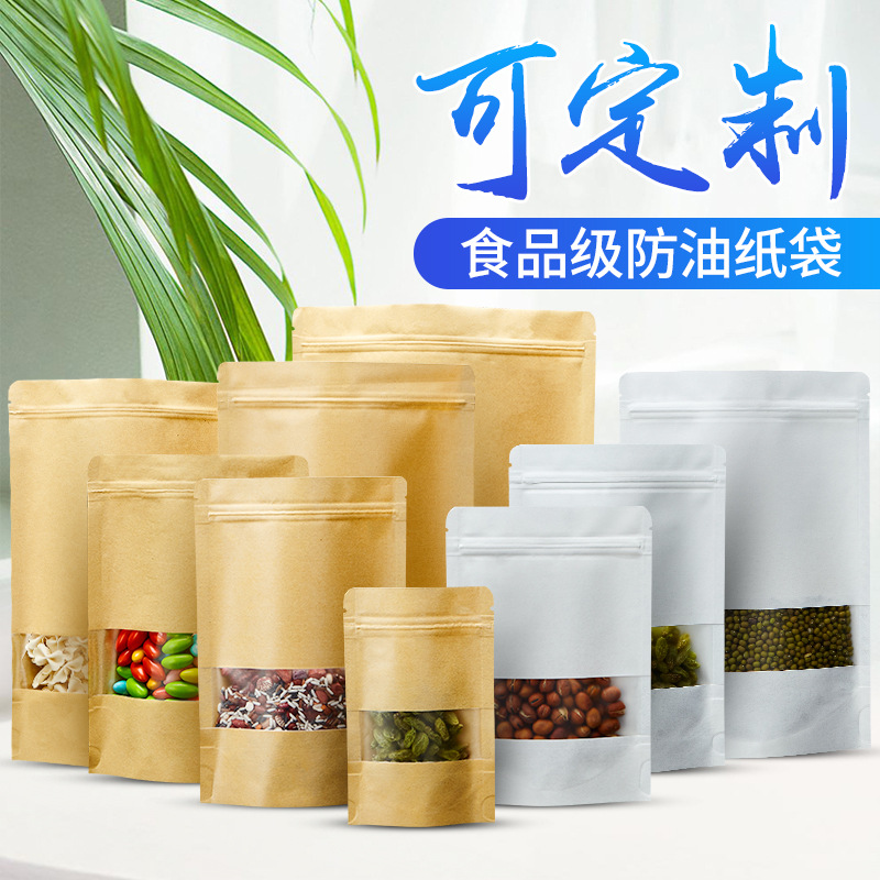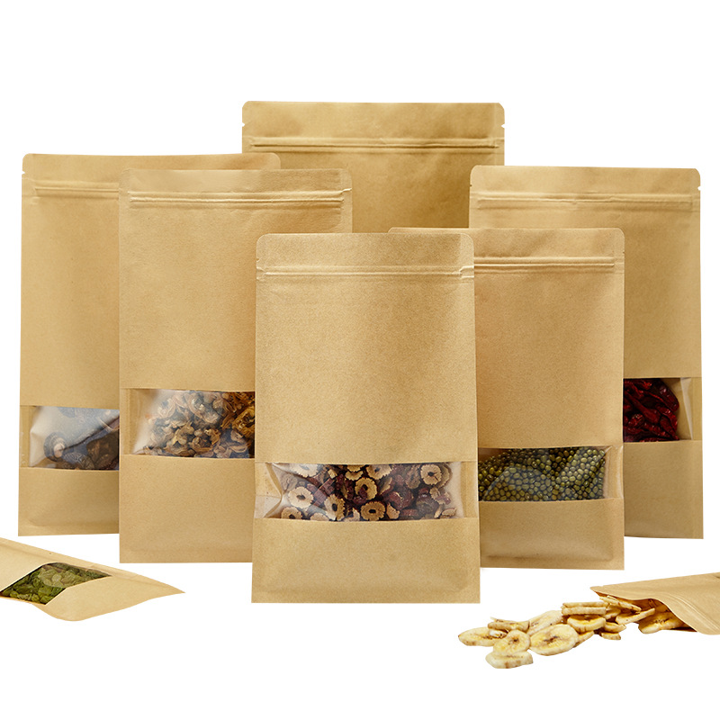 现货开窗牛皮纸自封袋无底茶叶休闲食品包装袋拉链密封袋可印LOGO